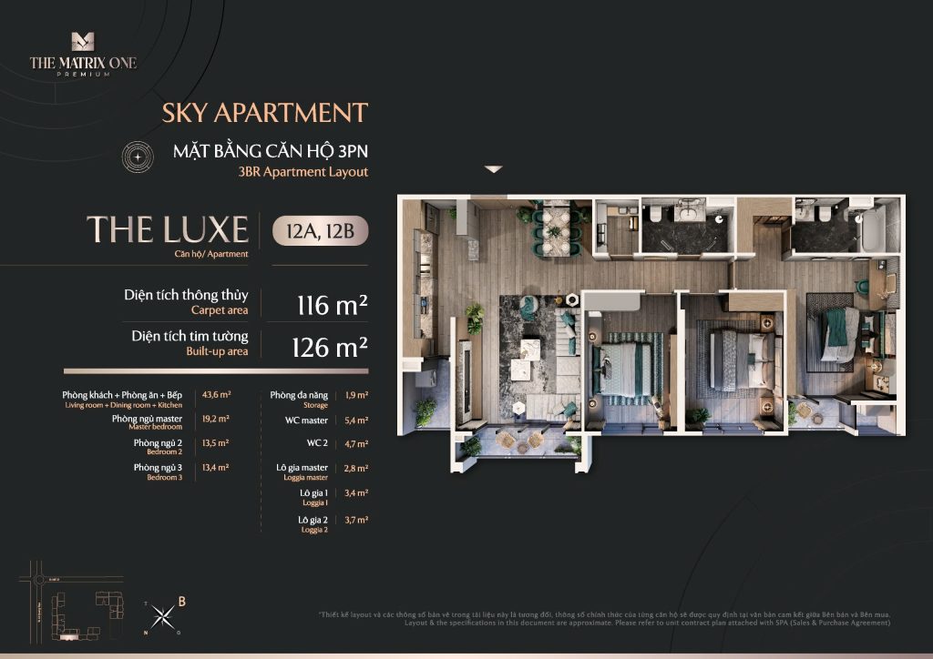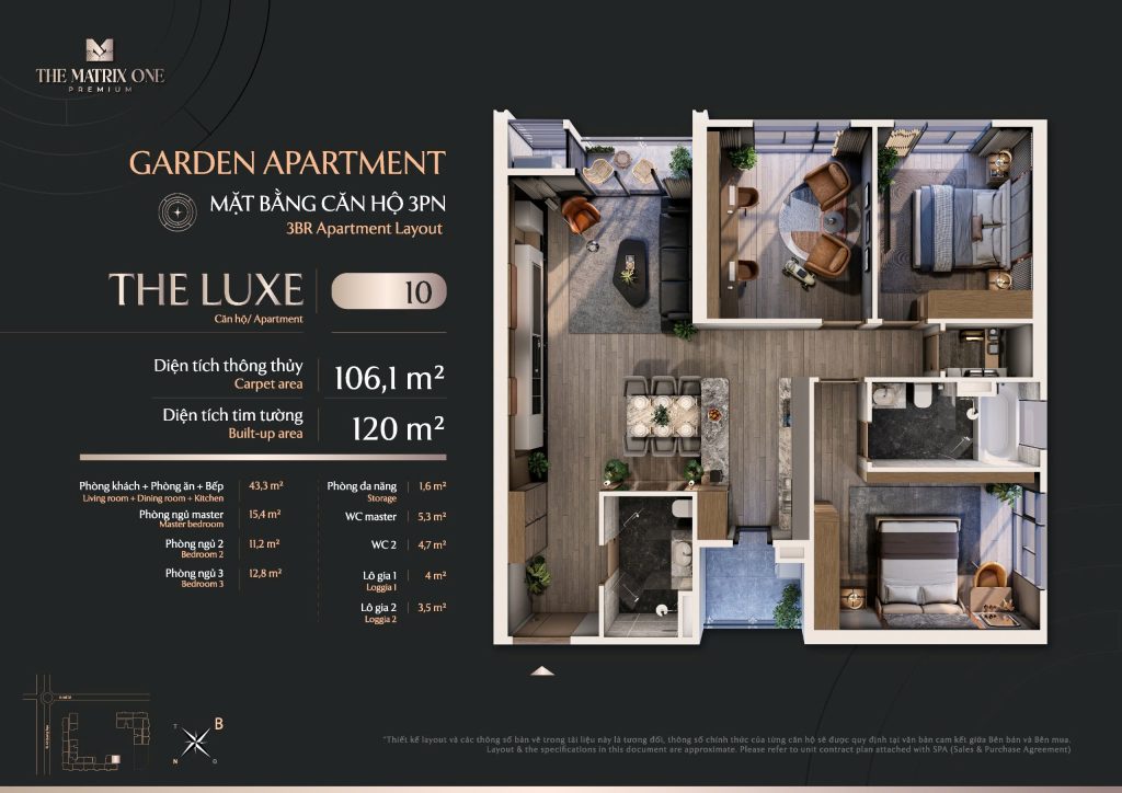 The Matrix One Premium: Căn hộ 3 phòng ngủ chỉ từ 105 triệu/m2